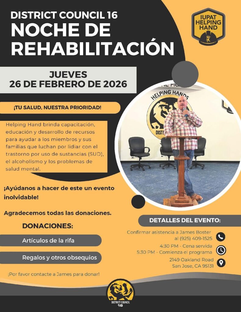 On April 25, we will be participating in the IUPAT Day of Action. This is a nationwide event focused on giving back to our communities and showing the strength of our union. Various activities will be set up across our areas and posted on the VAC calendar. I encourage all members to participate and help us build stronger community partnerships while supporting those in need.