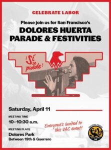 Members of Local 169, Saturday April 11th at 10 am in San Francisco. We will be attending the Dolores Huerta Day…