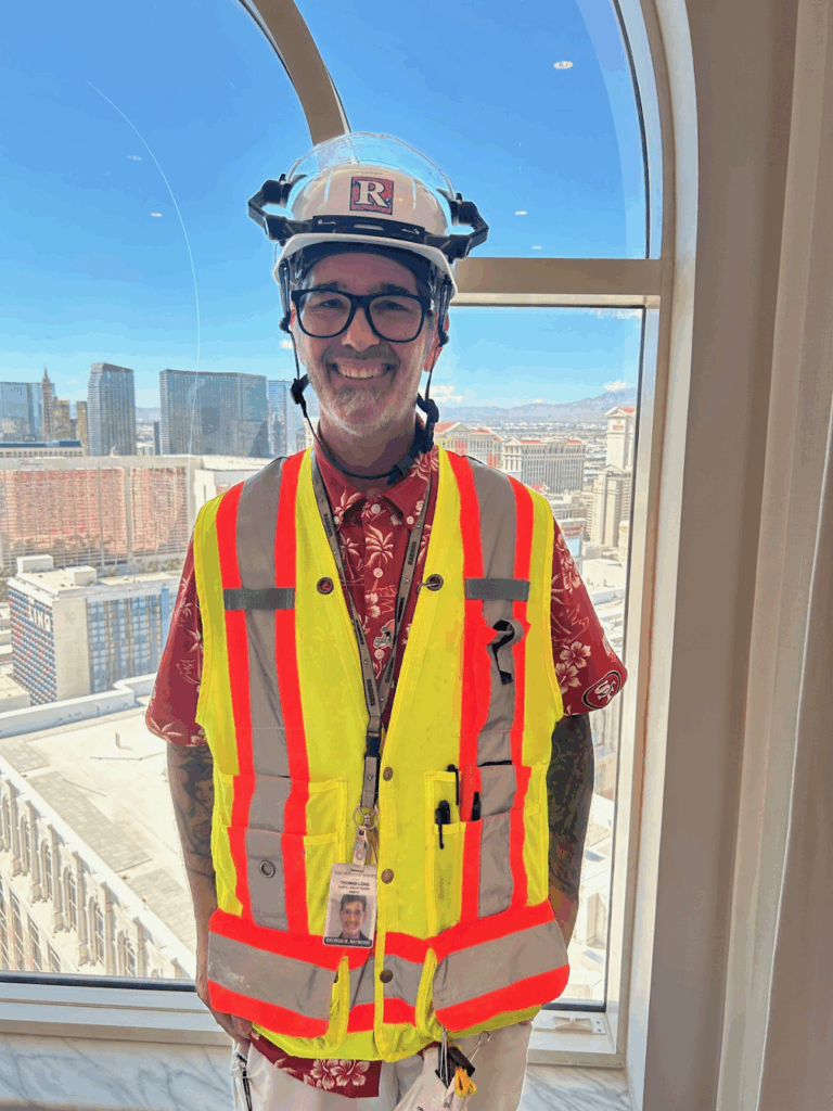 Over the years, Tommy has worked on iconic projects like City Center, The Encore, Raiders Stadium, and the historic Horseshoe Casino—a job he fondly remembers for its unique layout and the opportunity to work on a piece of old Vegas history.